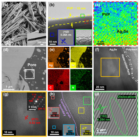 针对这一研究难点和热点问题,我校2023级博士研究生秦杰在导师的指导下通过溶液3D打印技术,成功制备出聚合物包覆的硒化银基柔性热电薄膜(图1),在400 K下功率因子达到2191.5 μWm-1K-2,刷新3D打印制备柔性有机/无机复合热电薄膜的最高纪录(图2)。这一突破源于对材料内部异质界面、孔隙、晶界与位错的协同调控(图3),实现了Seebeck系数与电导率的同步提升,并有效降低了热导率。同时,经1000次弯折后材料功率因子仍保持超93%,展现出优异的柔性。在材料研究突破的基础上,进一步利用溶液3D打印技术直接打印柔性热电器件(图4和图5),避免了传统工艺复杂的剪切、焊接、封装等步骤,显著提升了器件的制备效率,为柔性热电器件的规模化制造与产业化推广提供了一条新路径。