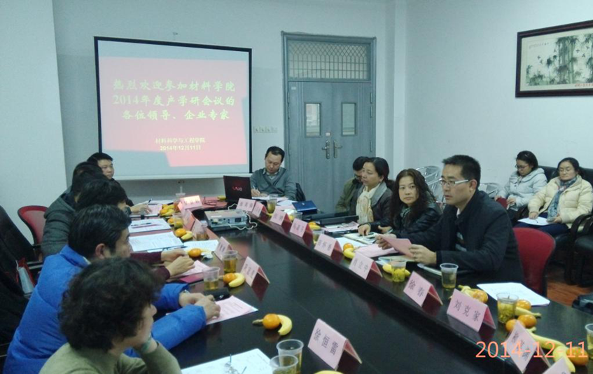 12月11日下午, 2014年度材料学院产学研工作会议在第三学科楼A317隆重召开,学院党总支副书记(主持工作)田怀香致欢迎词,副院长陈惠芬向做了材料学院2014年实习教学工作总结汇报。上海申花钢管董事长巩宏良代表十家与会企业代表作了讲话。出席会议还有主管教学和学生工作的副院长、各系部正副主任及实习带队老师、毕业班辅导员等,教务处副处长肖立中博士就进一步深化校企合作事宜做了重要讲话。
