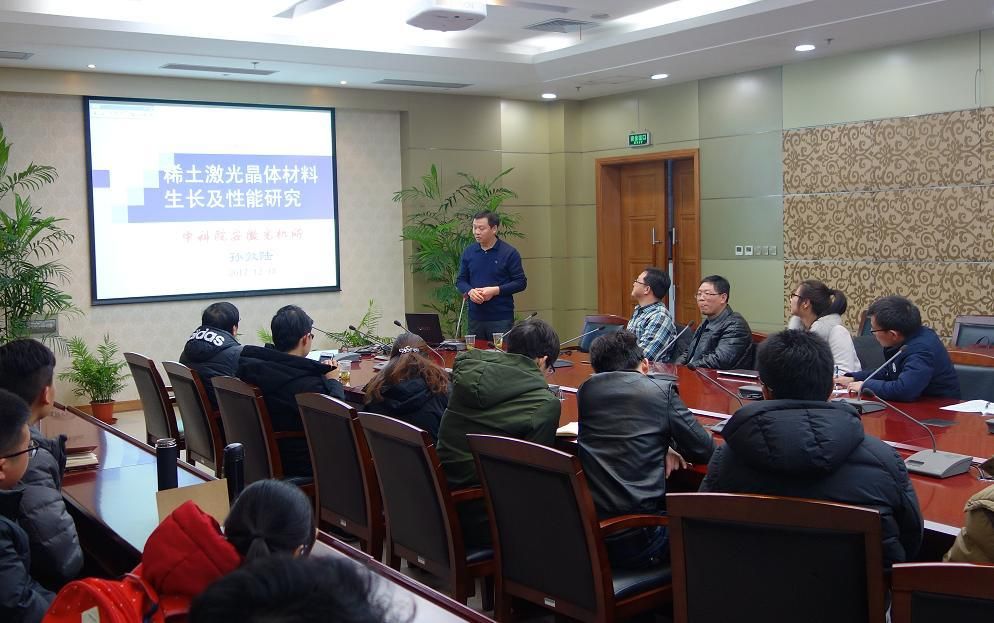 孙敦陆研究员的讲座以“稀土激光晶体材料生长及性能研究”为题详细介绍了以Er3+和Ho3+等激活离子在不同基质的激光晶体的特点和应用背景,讨论了这些晶体的能级结构、光谱和激光特性及器件研究进展。