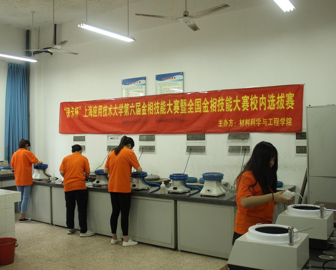2016年5月5日下午,“徕卡杯”上海应用技术大学第六届金相技能大赛暨全国金相技能大赛校内选拔赛在第三学科楼A102材料科学与工程学院实验室进行,来自材料科学与工程学院各年级不同专业的二十余位同学报名参加了此次比赛。本次选拔赛分制样、笔试两个环节,本次主要进行的是磨样环节,比赛过程中同学们通过腐蚀和抛光环节,最终制作成磨制好的样品。