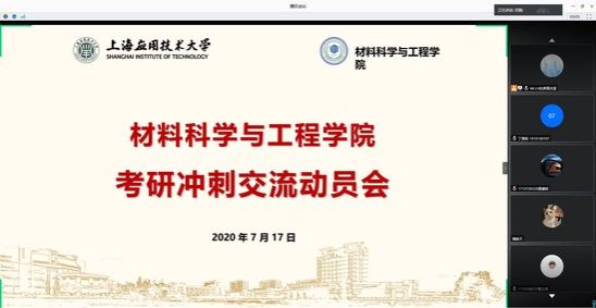 7月17日下午,材料学院召开2021届毕业生考研冲刺线上动员会,研究生院副院长叶璟应邀为2021届毕业生做冲刺动员宣讲。材料学院副院长田甜、2021届毕业班辅导员及全体2021届考研毕业生出席动员会。