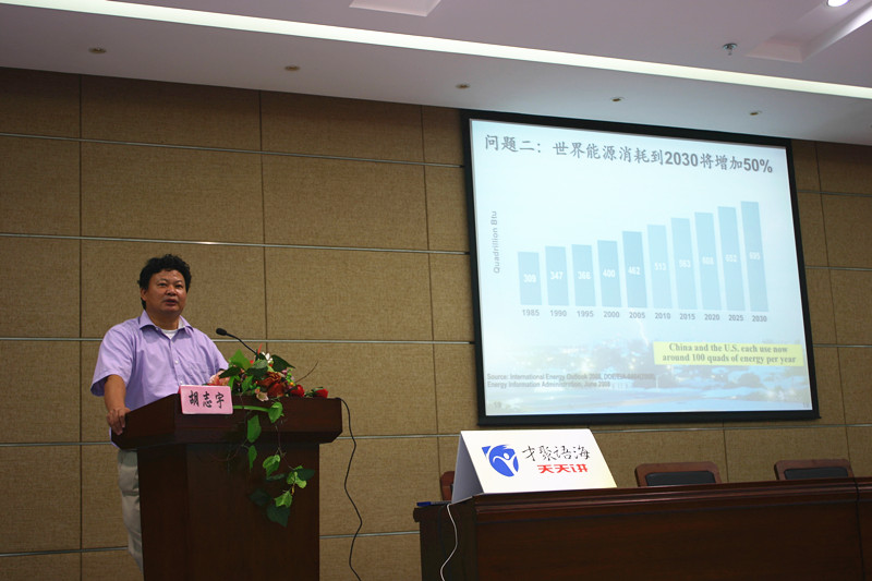 胡教授以《能源科技创新与应用展望》为题,图文并茂、深入浅出地分析了当今社会各类能源的优缺点,指出高温燃烧的火仍然是世界能源的利用主要方式,由此造成了广泛的环境污染和能源的低效使用,因此高温燃烧并非是能源利用的最好选择。胡教授研究发现可以利用纳米催化材料在室温条件下获得世界上最小的火堆——室温纳米催化燃烧,并在世界范围内首次提出了全固态室温纳米催化燃烧发电的概念,这种全新的发电方式可在室温下直接将燃料的化学能转换为电能,避免了传统高温燃烧80%以上的热能损失。这一打破传统思维的研究,引起了现场师生极大的关注。