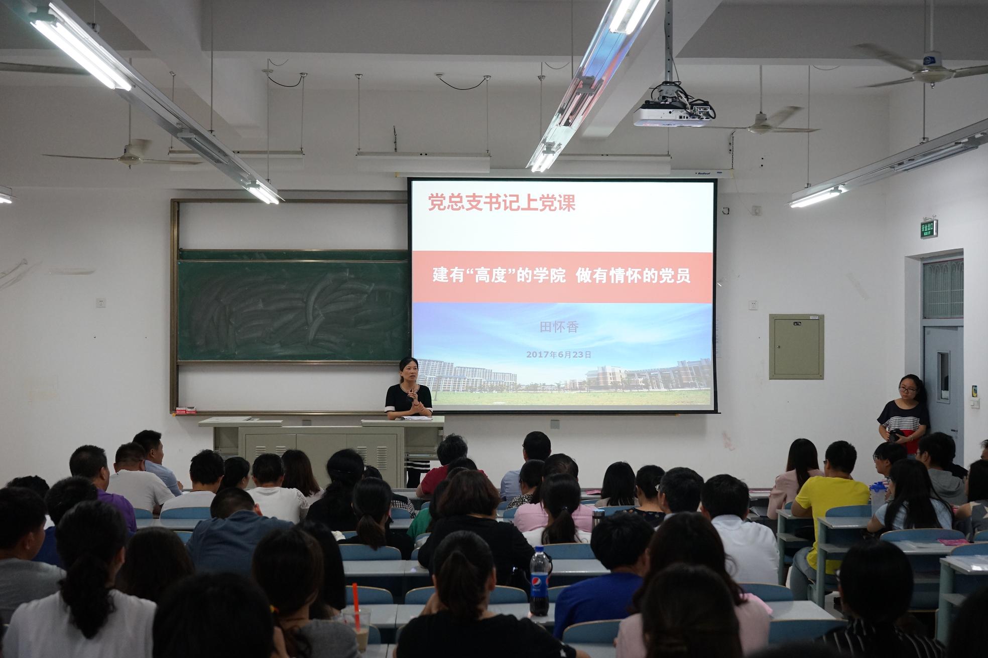 6月23日,为推动材料学院“两学一做”学习教育常态化制度化工作深入开展,学院党总支书记田怀香为全体师生党员上了一堂题为《建有“高度”的学院,做有情怀的党员》的专题党课。