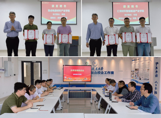 会议伊始,学部副主任周鼎宣读了《关于材料技术学部组织构架改革及相关职务任命通知》,新架构旨在打破学科壁垒,面向集成电路、智能制造等上海市重点产业需求,深化产教融合,培养高水平应用型人才。集成电路材料产业学院和汇得材料智能制造产业学院的正式成立,标志着学部在面向产业需求、推动高质量发展上迈出关键一步。