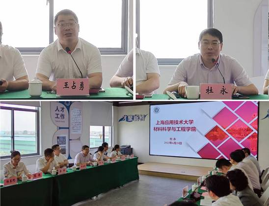 6月20日,校党委常委、组织部统战部部长王占勇和材料学院院长杜永带领学院教师来到靖江开展产教融合专项调研,并与新桥镇人民政府就依托靖江绿色智能铸造中心共建研究生实践基地举行签字仪式。靖江市政府副市长、科技镇长团团长裴颂文亲自陪同调研,并见证双方签订共建协议,新桥镇人民政府党政负责同志一同参加调研及相关活动。