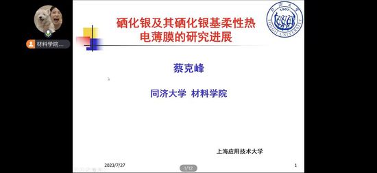 蔡克峰教授曾担任中国材料研究学会热电分会常务理事,参加和承担了科技部、国家自然科学基金委、教育部及上海市等的科研项目十余项,在Nature Communications, Energy & Environmental Science,Progress in Polymer Science, Advanced Energy Materials, Advanced Functional Materials, Nano Energy等杂志发表SCI论文160余篇,获中国发明专利三十余项。主要研究柔性热电材料及其器件、柔性超级电容器材料、新型电池及其器件等方向。蔡克峰教授以“硒化银及硒化银基柔性热电薄膜的研究进展”为主题,详细介绍了目前硒化银以及硒化银基柔性热电薄膜的制备工艺、研究进展、存在的主要难题和未来发展方向。