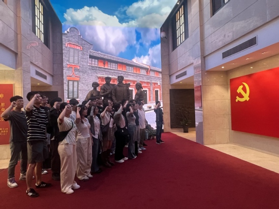 追溯初心,坚定信念。在中共二大会址,党员们重温党章诞生历程,深刻认识党的早期组织纪律建设和思想建设,理解“坚持真理、坚守理想,践行初心、担当使命,不怕牺牲、英勇斗争,对党忠诚、不负人民”的伟大建党精神源头。在党旗前,研究生第一党支部书记王大庆带领全体党员高举右拳,重温入党誓词,进一步强化了大家对党的庄严承诺,坚定了全心全意为人民服务的信念。