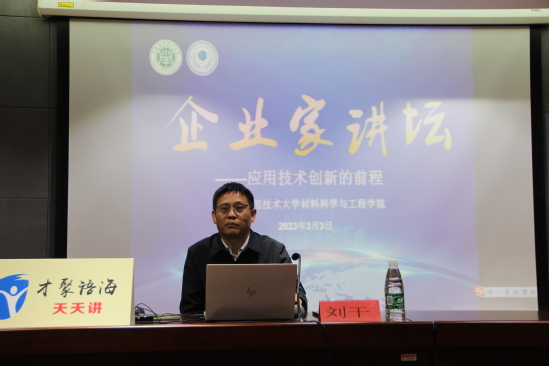 为弘扬企业家精神和工匠精神,打造中国制造的价值理念,提升中国制造的品质和品位,培养一批高层次技术人才、高素质技能人才以及具有敬业精神的材料人才,材料学院于3月3日成功举办2023年度首场“企业家讲坛”,特邀南京赛康交通安全科技有限公司创始人刘干作“应用技术创新的前程”专题报告。