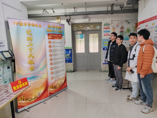 为深入学习贯彻党的二十大精神,夯实基层党组织建设,增强服务意识,改进工作作风,充分发挥党员先锋模范作用,提升党员队伍整体服务能力,推动党员干部将“群众为根、服务为本”的理念更加内化于心、外化于行,材料学院本科生第二党支部于学生楼宇设立“党员服务岗”,科学编排党员服务班次,公布党员信息、联系方式,深入一线,面对面开展党员咨询服务,接受群众监督,为学生解答疑惑,同时向广大群众宣传党的二十大精神,9个数字带大家速读党的二十大报告。