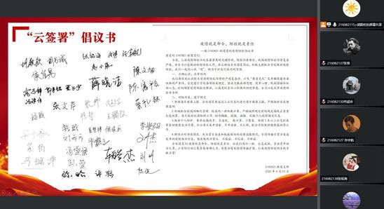 本次云团日活动主要包括四个部分,分别是“庆团建,唱团歌;学决议,悟思想;思成果,谈心得;揽担当,签倡议。”通过《中共中央关于党的百年奋斗重大成就和历史经验的决议》的学习,强化疫情期间身为共青团员的责任、使命和担当,领悟上海疫情防控严峻形势下发挥团员青年作用正当时,共同 “云签署”倡议书。支部积极分子积极参与讨论发言,表示会抓住“悟思想”这个基本点,把牢“揽担当”这个总开关,聚焦“跟党走”这个总目标。