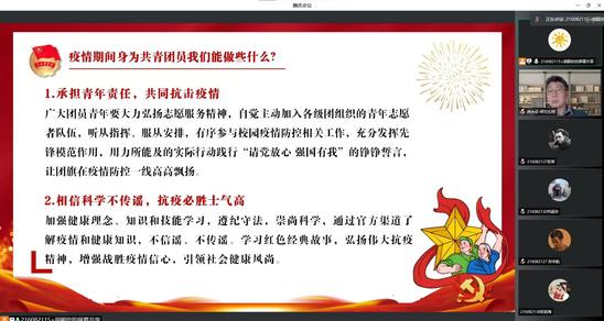 通过此次主题团日活动,团员青年们纷纷表示愿意为抗击疫情做出贡献和积极关注今年党的二十大召开,共同坚定着向第二个百年新征程的奋斗决心。