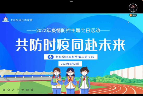 为了进一步从细从实做好新冠疫情防控工作,提高广大师生对于疫情防控工作的认识,发挥党支部的战斗堡垒和党员的先锋模范作用,材料科学与工程学院本科生第二党支部于3月23日采用云端形式开展“共防时疫·同赴未来”疫情防控主题党日活动,从学校疫情防控指挥体系到学院抗疫工作纪实进行全面介绍与剖析,同时结合本支部工作实际,有力号召全体党员在疫情防控中戴党徽、亮身份、做示范,全力保卫来之不易的疫情防控成果,从严从紧、抓细抓实学校各项举措,充分发挥基层党组织战斗堡垒作用以及党员先锋模范作用。