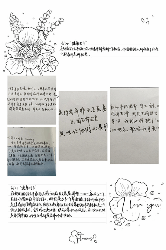 同时支部为了教育引导校内外全体学生党员积极配合所在地区和学校开展疫情防控工作,在线上线下、校内校外弘扬抗疫主旋律、团结正能量,特发起“健康打卡”特色活动,一日一打,鼓励学生用正能量言语、抗疫志愿剪影、抗疫视频等形式凝聚“疫”线合力,激励广大师生以高昂的姿态投入到学校准封闭管理工作状态,共防时疫、同赴未来。