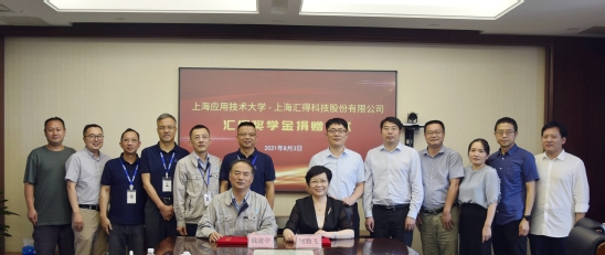 随后,汇得科技李兵副总经理、科研院陈臣副院长和材料学院杜永院长分别介绍了汇得科技、学校科研和材料学院发展概况。接着,柯勤飞校长和钱建中董事长共同签署了奖学金捐赠协议,并为产学研基地揭牌。之后,双方围绕科研项目、人才培养、产业学院等方面等进行座谈交流。最后,校长柯勤飞表示,汇得科技坚持以技术创新为中心,观念创新为先导,管理和机制创新为保障的创新工程,我校以“厚德精技,砥砺知行”为精神,坚持“卓而独特、越而胜己”价值取向,追求卓越创新,双方一定能够实现协同创新、共创价值,共同助力产业的发展。