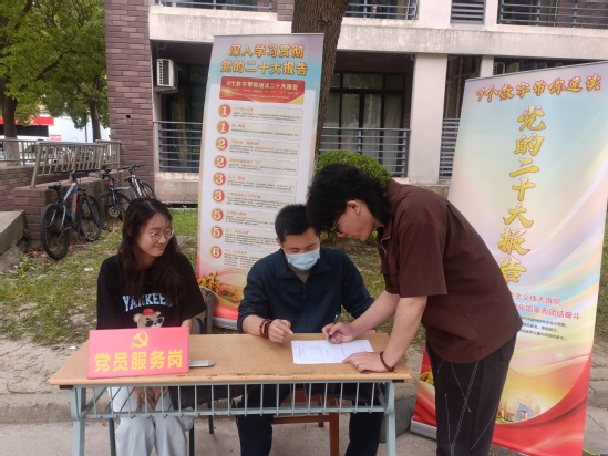 为深入践行党的二十大精神,充分发挥党员的先锋模范作用,强化党员为人民服务的意识,将理论学习与实际行动紧密结合,以切实举措为群众办实事、解难题,材料技术学部本科生第二党支部于4月30日在学生宿舍楼下设立党员服务示范岗,为广大学生搭建起全方位的咨询交流平台。