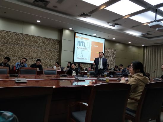 吴庆生教授曾担任同济大学化学学院院长、纳米中心主任,发表SCI收录论文270多篇;SCI引用5000多次,多次获得省部级科技成果奖。他的报告题目是“纳米材料的仿生合成及其在生物医药中的应用”。吴教授结合日常生活和社会热点问题,从水污染治理纳米材料谈到利用农作物生长合成纳米薄膜,从三聚氰胺的危害到利用纳米仿生合成的解决方案。思路开阔,大胆想象,引起广大师生热烈讨论,极大地激发了研究生的创新热情。
