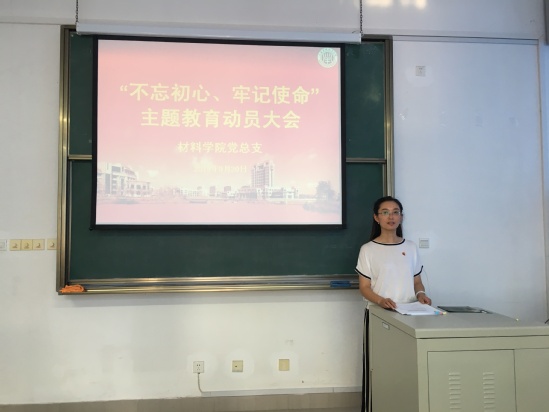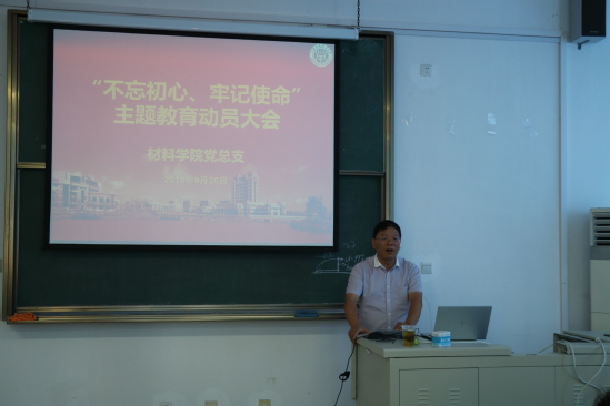 9月20日,材料学院召开“不忘初心、牢记使命”主题教育动员大会。党总支副书记、副院长李婉主持会议,学校主题教育巡回指导组第一组副组长朱丽娟出席会议,学院全体党员参会。