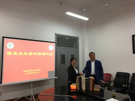 5月14日,材料学院举办宝山区国资委下属企业监事会主席陈亮先生图书捐赠仪式。材料学院党总支书记田怀香教授、金属系主任徐春教授热情接待陈亮先生,并对捐赠书籍的热心行动表示感谢!材料学院相关专业教师也参加了捐赠仪式。此次,陈先生向材料学院捐赠28本金属专业书籍,这些都是他在马钢、宝钢工作期间的珍贵专业资料和书籍。