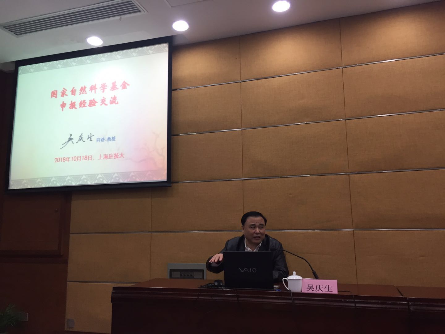 2018年10月18日,材料学院邀请同济大学吴庆生教授作国家自然科学基金申报经验交流,吴教授结合自己多年的经验,从选题的创新性与可行性、几个重要部分的撰写技巧、主要避免事项、进入良性循环后的申报策略四个方面进行了讲述。