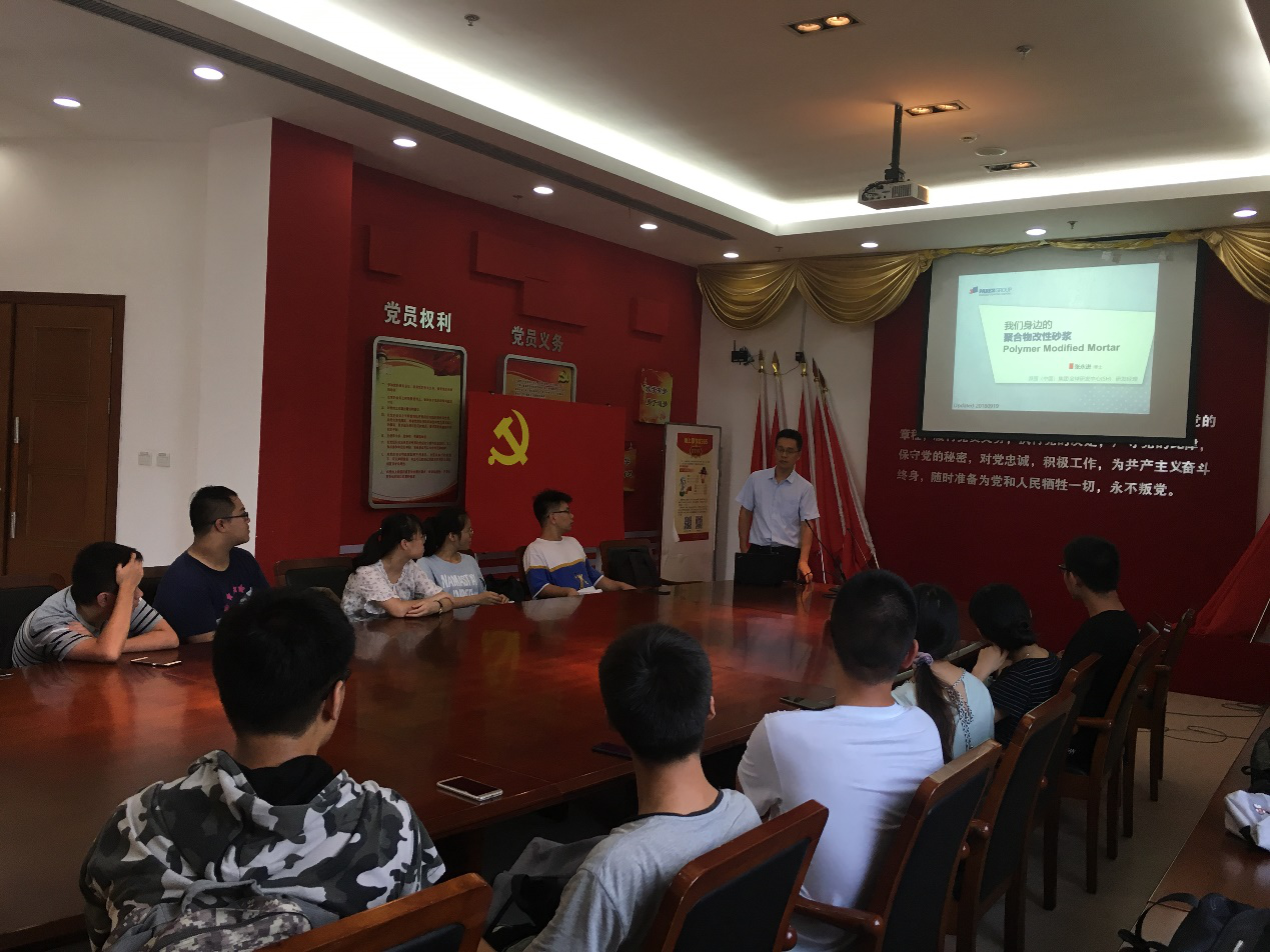9月19日,材料学院特邀法国派丽集团张永进博士来校为建筑材料专业学生作报告,报告题目为《我们身边的聚合物改性砂浆》。报告会由材料学院副院长田甜主持,建筑材料系部分教师及16101261班全体学生聆听了报告会。