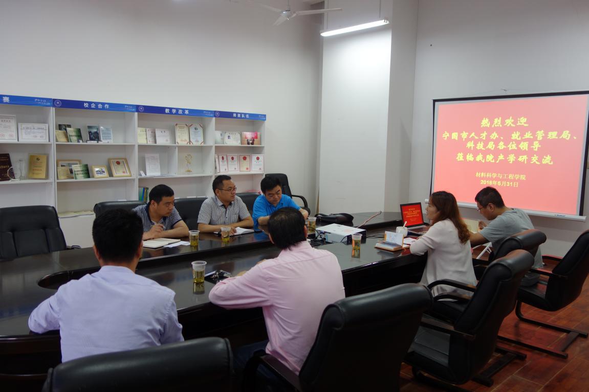5月31日下午,宁国市人才办主任王道逵、就业管理局局长张靖、科技局对外合作科科长李春苗一行来访材料学院,学院副院长贾润萍及相关教师代表会见了来访客人,双方就宁国市与我院在人才引进、产学研等方面的沟通合作进行了交流座谈。