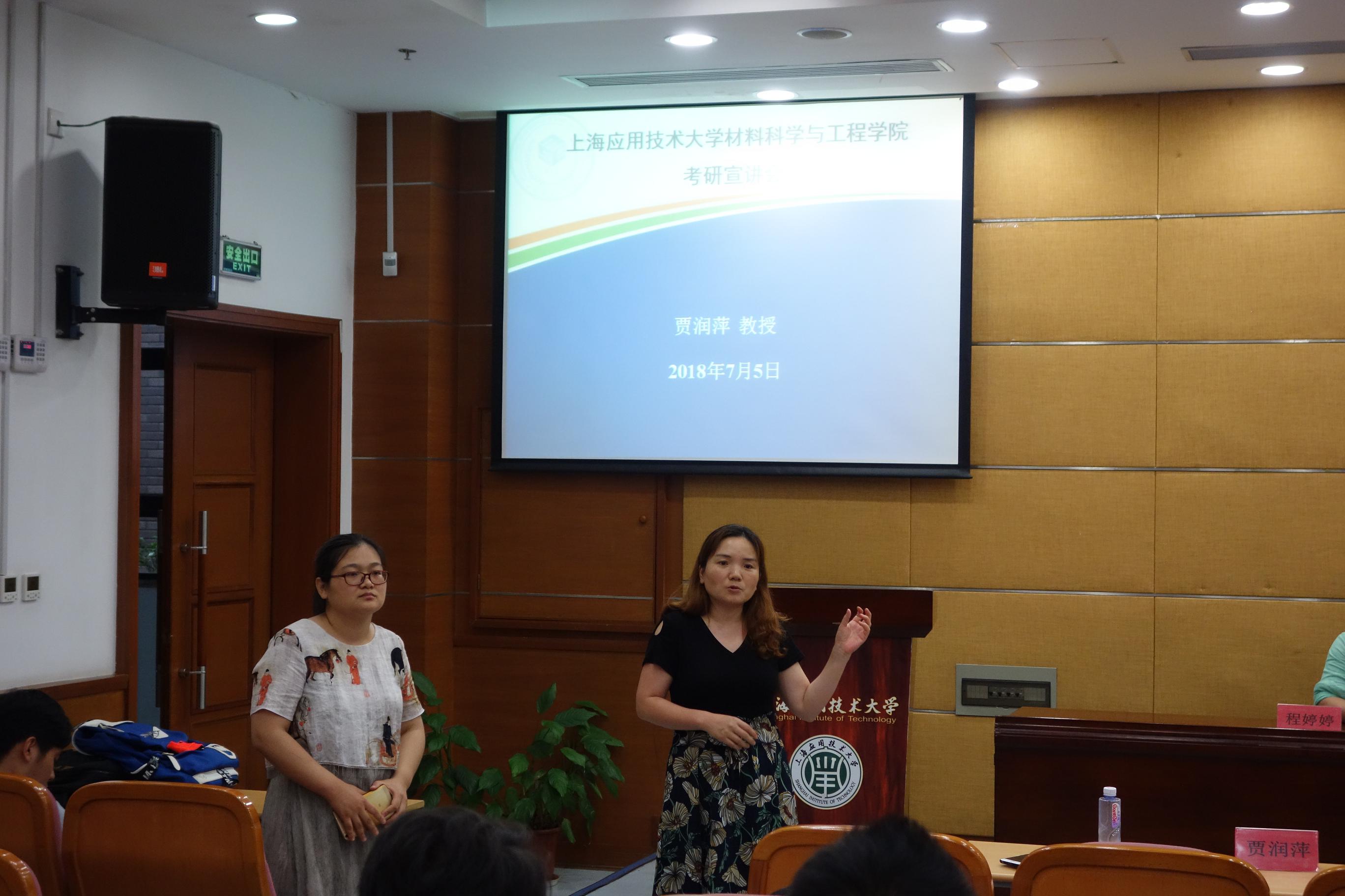 贾润萍教授重点介绍了材料学院优良的办学传统、浓郁的科研创新氛围和雄厚的学术研究实力,以及学院近年来为吸引优质生源所做出的努力,从学院研究生培养成效和就业等方面介绍了上海应用技术大学材料学院的研究生培养平台,并热切呼吁在场同学们积极报考材料学院,实现梦想。