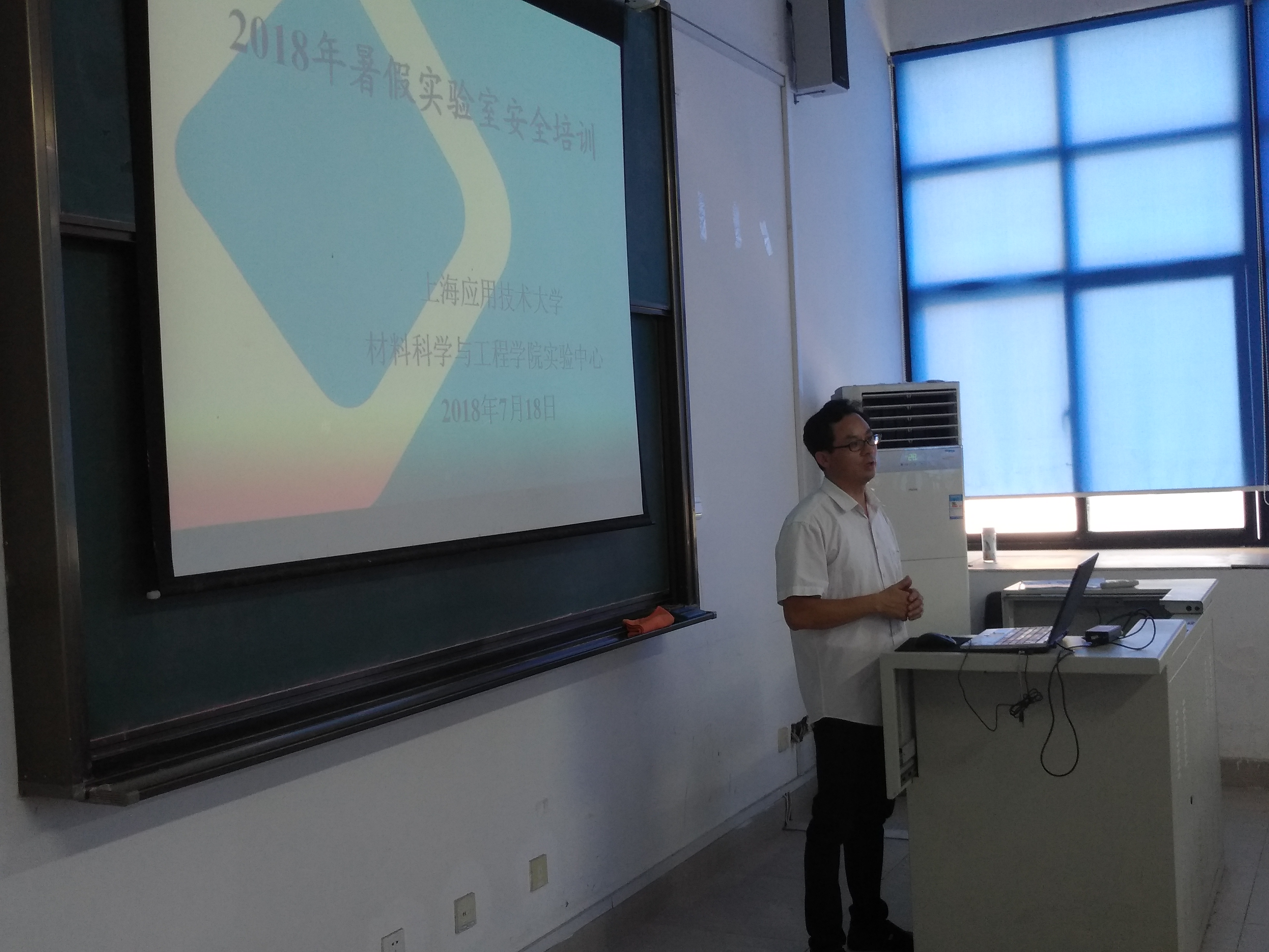 当日下午,根据学院安排,实验中心主任储耀卿博士对暑期留校继续研究工作的所有学生进行了安全专题培训。储老师从人身、水电、仪器设备、试剂存放到废液处理等方面,详细讲解了实验室操作注意事项。特别要求暑期留校开展实验的学生,必须严格遵守操作规范,彻底消灭安全隐患。并通过案例讲解、情景模拟,指导实验人员在遇到不同灾害事故时的自我保护和危机应对能力。最后,辅导员于圣洁老师也特别叮嘱了同学们假期留校安全事宜,提高安全防范意识。