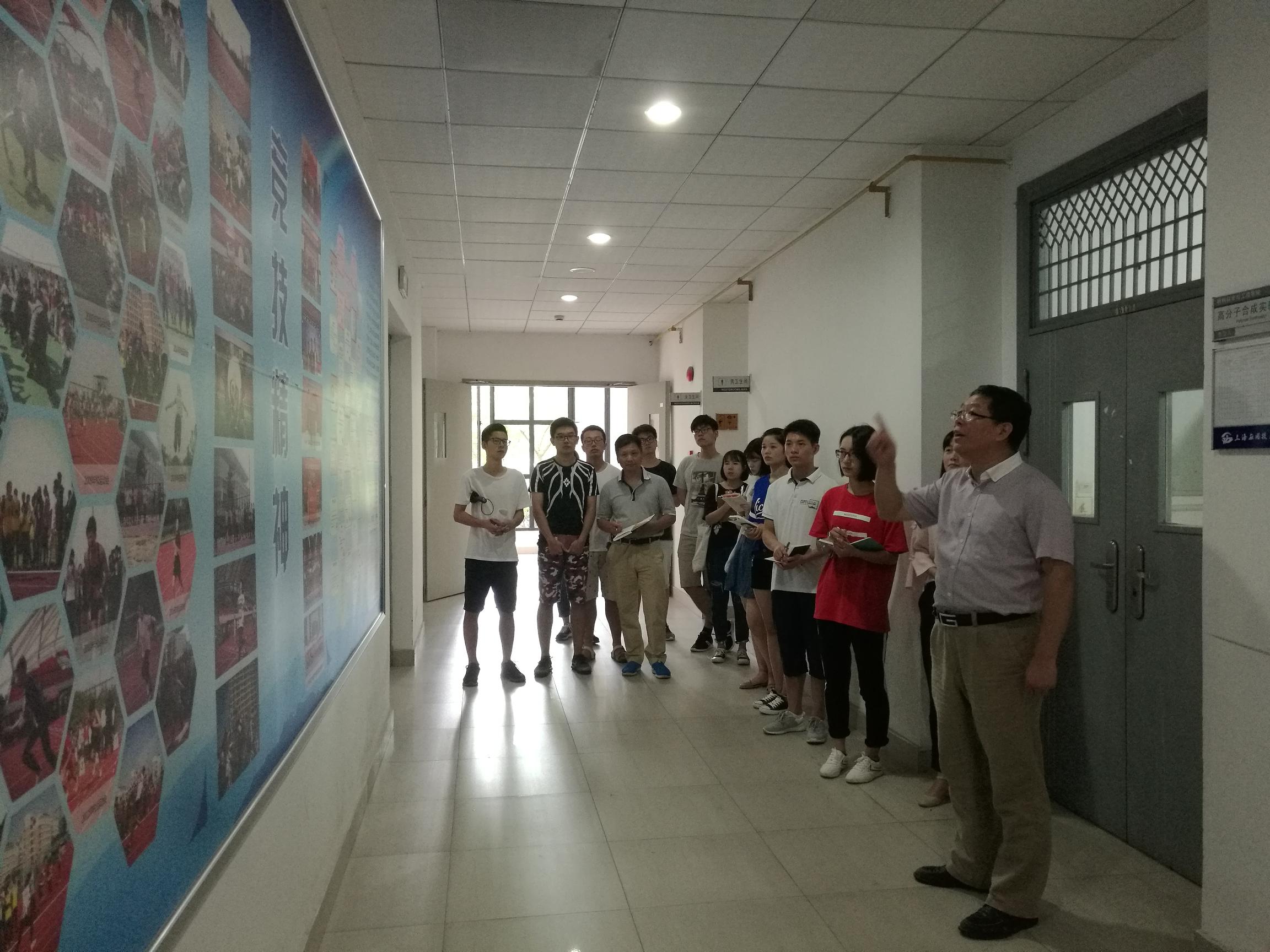 院长徐家跃沿着审核评估专业考察线路亲自为各位班导师、小班导讲解了材料学院的基本情况、学院文化以及学院近年来在各方面取得的成绩。院长徐家跃教授指出,材料学院有特色鲜明的育人理念,学院在学科办学特色、学生科技创新、学科应用与行业接轨、学生竞技精神等方面均独树一帜,富有材料特色,材料学子应脚踏实地,认真扎实学好专业知识技能。新生入学后,将由班导师、小班导带领每一位材料2017级新生实地参观材料学院,使新生进一步增强“知院、爱院、荣院”意识。