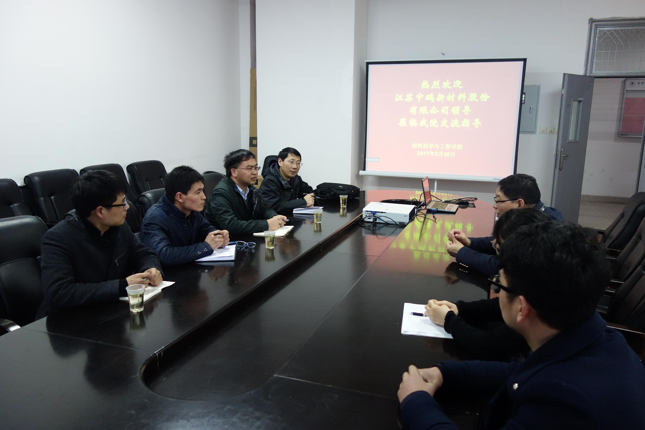 3月30日,江苏中鹏新材料股份有限公司副总经理单玉来一行来访材料科学与工程学院。材料科学与工程学院院长徐家跃、副院长贾润萍等会见来宾。