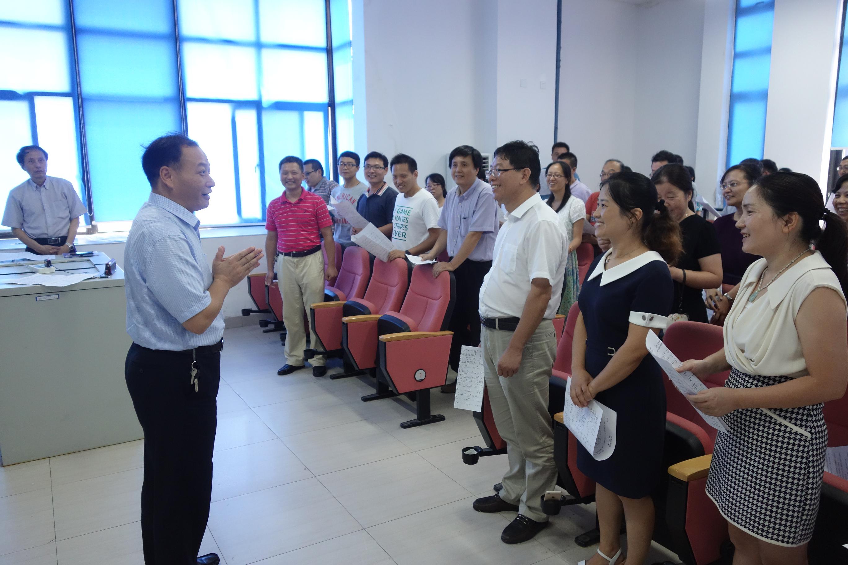 “红军都是钢铁汉,千锤百炼不怕难。”阵阵悠扬婉转的歌声在第三学科楼飘荡,这是9月9日下午材料学院为迎接纪念建党95周年和中国工农红军长征胜利80周年的“唱红歌”比赛而正在进行的合唱排练。学校党委常委、宣传部部长杨明也亲临排练现场指导慰问。杨明对材料学院全体教师服从大局发扬风格给予高度评价,对老师们利用中午时间加紧排练给予赞扬和感谢,同时祝愿材料学院合唱队在学校合唱比赛中赛出水平!