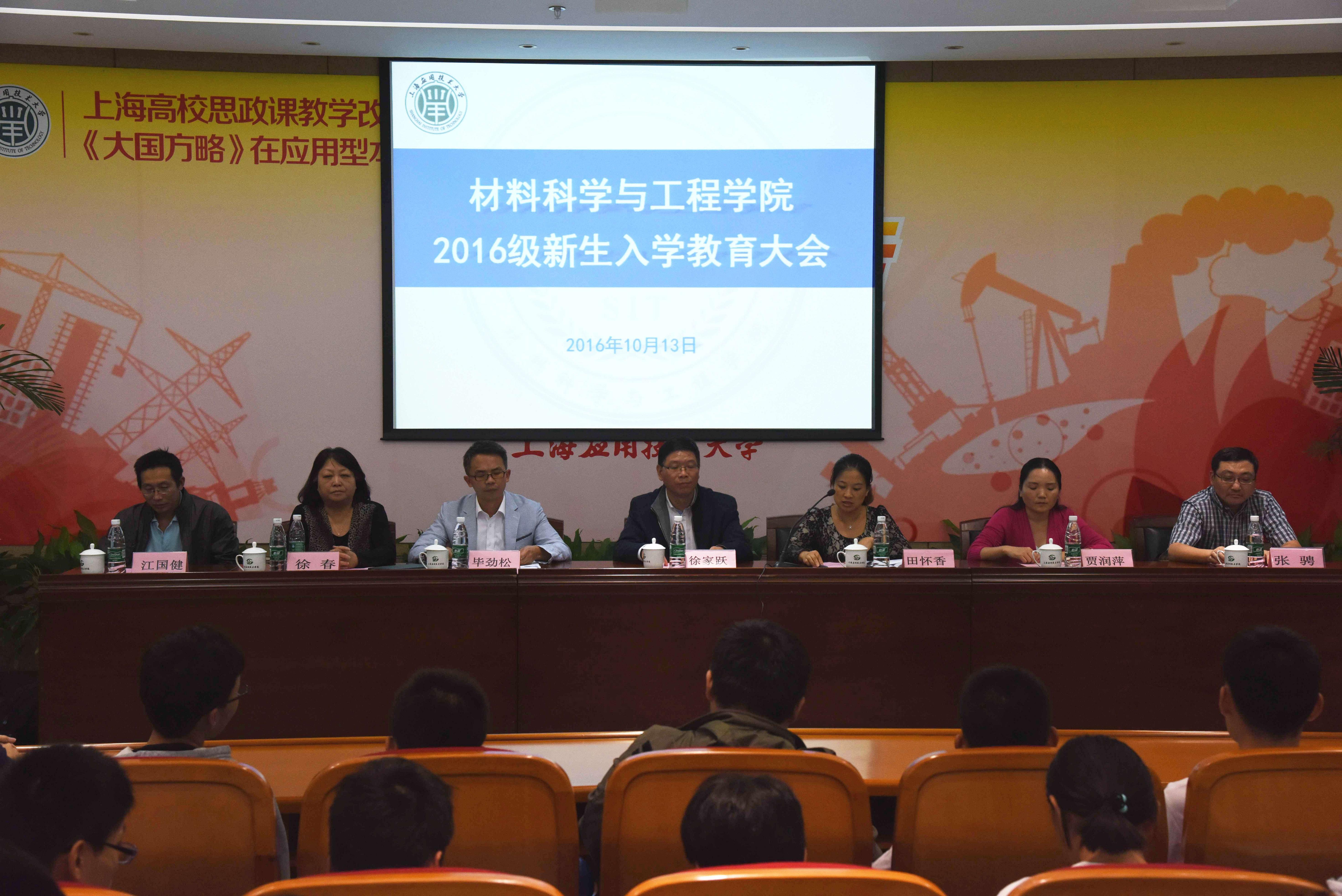 2016年10月13日,材料科学与工程学院在图书馆B101报告厅召开2016级新生入学教育大会。会议由材料学院党总支书记田怀香主持,材料学院院长徐家跃,党总支副书记、副院长毕劲松,副院长贾润萍,金属材料系主任徐春、复合材料系主任张骋、材料科学系主任江国健及新生辅导员出席会议。材料学院2016级全体本科生参加大会。