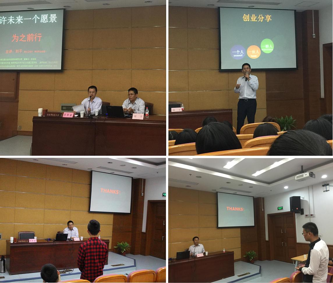 整个讲座在轻松、活跃的氛围下进行,刘干董事长主要与我院学生分享了他10余年的创业、研发的经历和经验,以及个人对“三观”的思考、对“做人、做事、做学问”的思考,他希望通过这次讲座能够让同学们更好地规划今后的学习、工作和生活,给未来许下一个愿景,并且为这个愿景付出努力,坚持到底。在讲座之后的互动交流环节,气氛十分热烈,同学们积极踊跃发言,刘干董事长耐心地对同学们的每个问题都做了详细的回答。这次讲座不但符合我校培养应用型人才的办学特色,而且可以更好的促进我院学生的学习、科研以及就业,取得了非常好的效果。
