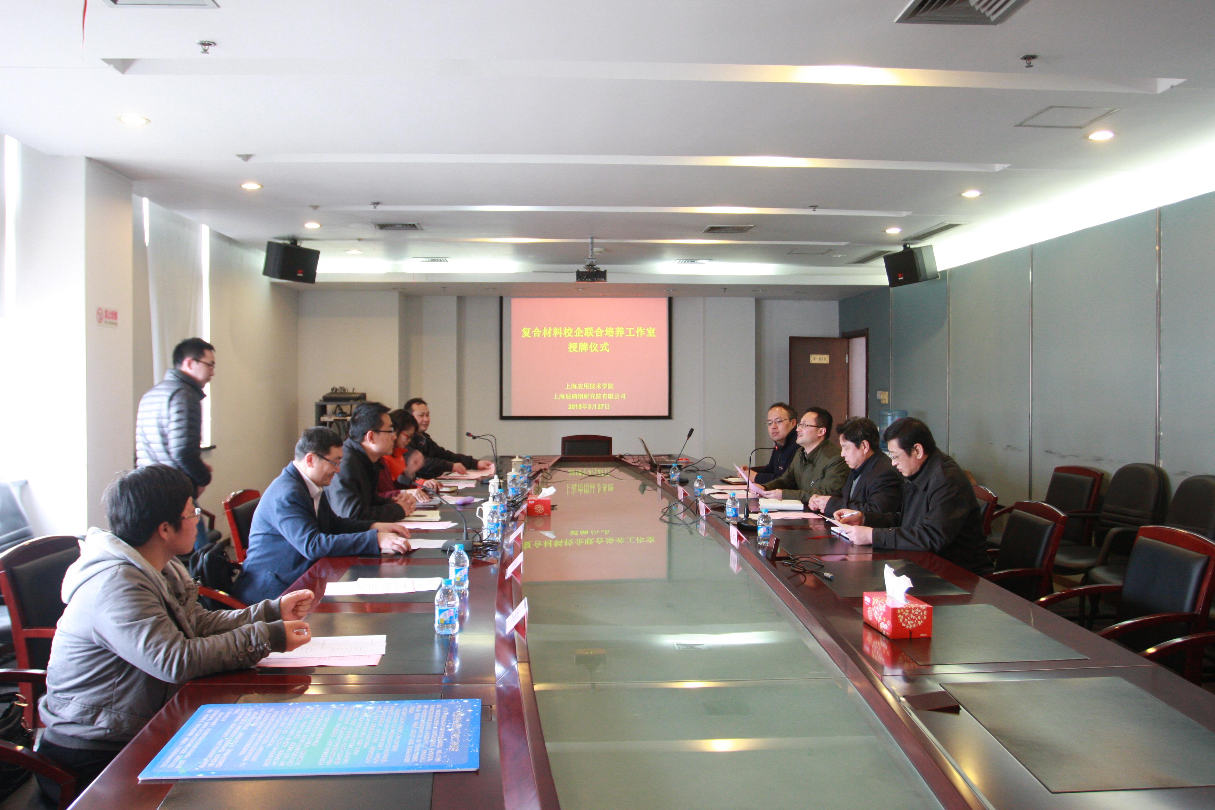 2015年3月27日下午,我院复合材料与工程专业“复合材料与工程校企联合人才培养工作室”授牌仪式在上海玻璃钢研究院有限公司隆重举行。教务处实践处长肖立中、材料学院教学院长陈惠芬、复合材料系主任张骋教授等领导,玻璃钢研究院副总经理、总工程师张锦南先生,人事部经理何杰、公司研发管理部部长马光志、信息办主任王强华等公司高管出席授牌仪式,肖立中博士和张锦南副总为工作室揭牌。