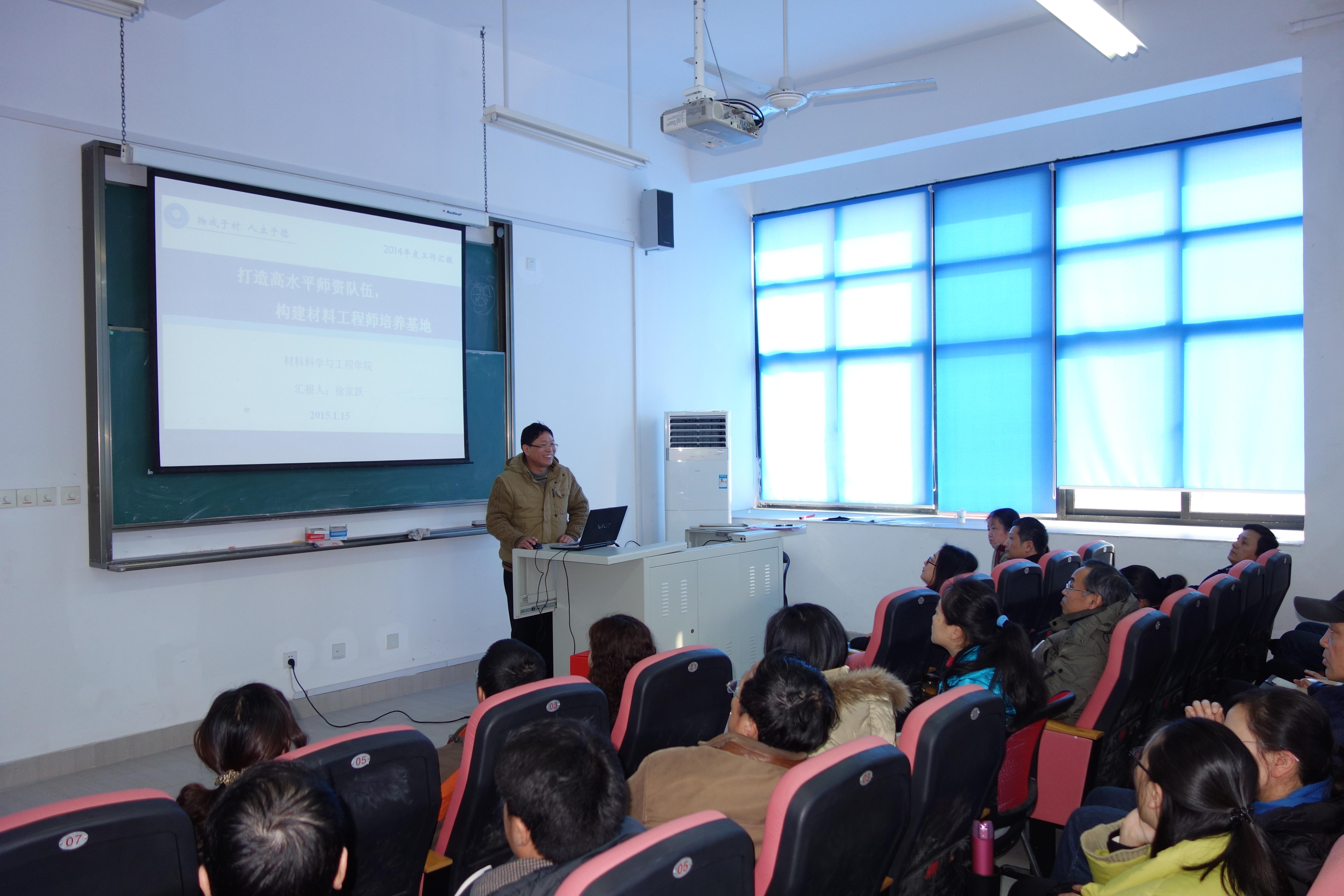 2015年1月20日下午,材料科学与工程学院第四届第三次全体教职工大会在学院会议室举行。院长徐家跃、院党总支副书记田怀香以及院领导班子成员出席,学院全体教师参加会议,会议由工会主席郑康生主持。