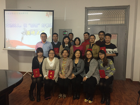 为了培养青年教师队伍,选拔优秀人才,彰显材料学院风采,材料学院积极响应学校号召,开展了以“立德树人,争做‘四有’好老师”为主题的教师教书育人演讲比赛,党总支副书记田怀香主持演讲比赛,副书记、副院长章冬云,副院长陈惠芬,教工支部书记出席比赛并担任评委工作。