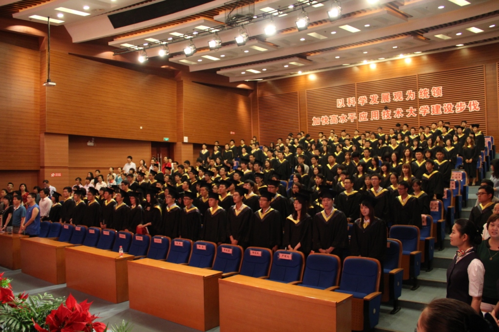 典礼开始前,在主持人的提议下,全体毕业生用热烈的掌声向所有为他们四年的成长作出贡献的人们表示衷心的感谢。典礼在庄严的国歌声中拉开序幕。