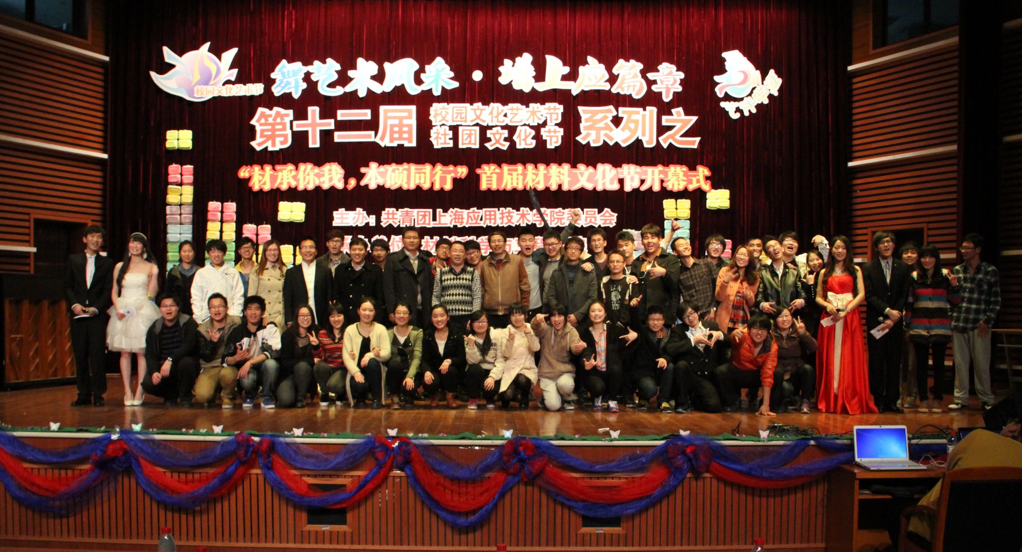 4月2日晚,作为我校第十二届校园文化艺术节暨社团文化节的开幕仪式,由校团委主办、材料学院承办的“材承你我••本硕同行”首届材料文化节开幕式和庆祝晚会在学生活动中心多功能厅隆重举行。校团委负责人、材料学院党政领导和多位教授、老师以及全体辅导员应邀出席,与现场近300名学生共同度过一个美好的夜晚。