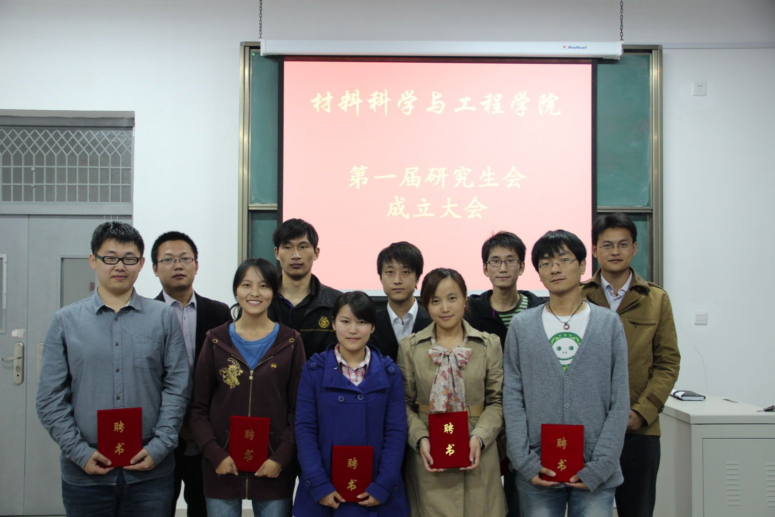 11月1日,材料学院首届研究生会干部聘任大会在第三学科楼A323顺利举行。副书记、副院长王占勇、团总支书记朱菁,研究生辅导员贾书果以及材料学院首届研究生会全体成员出席此次聘任大会。