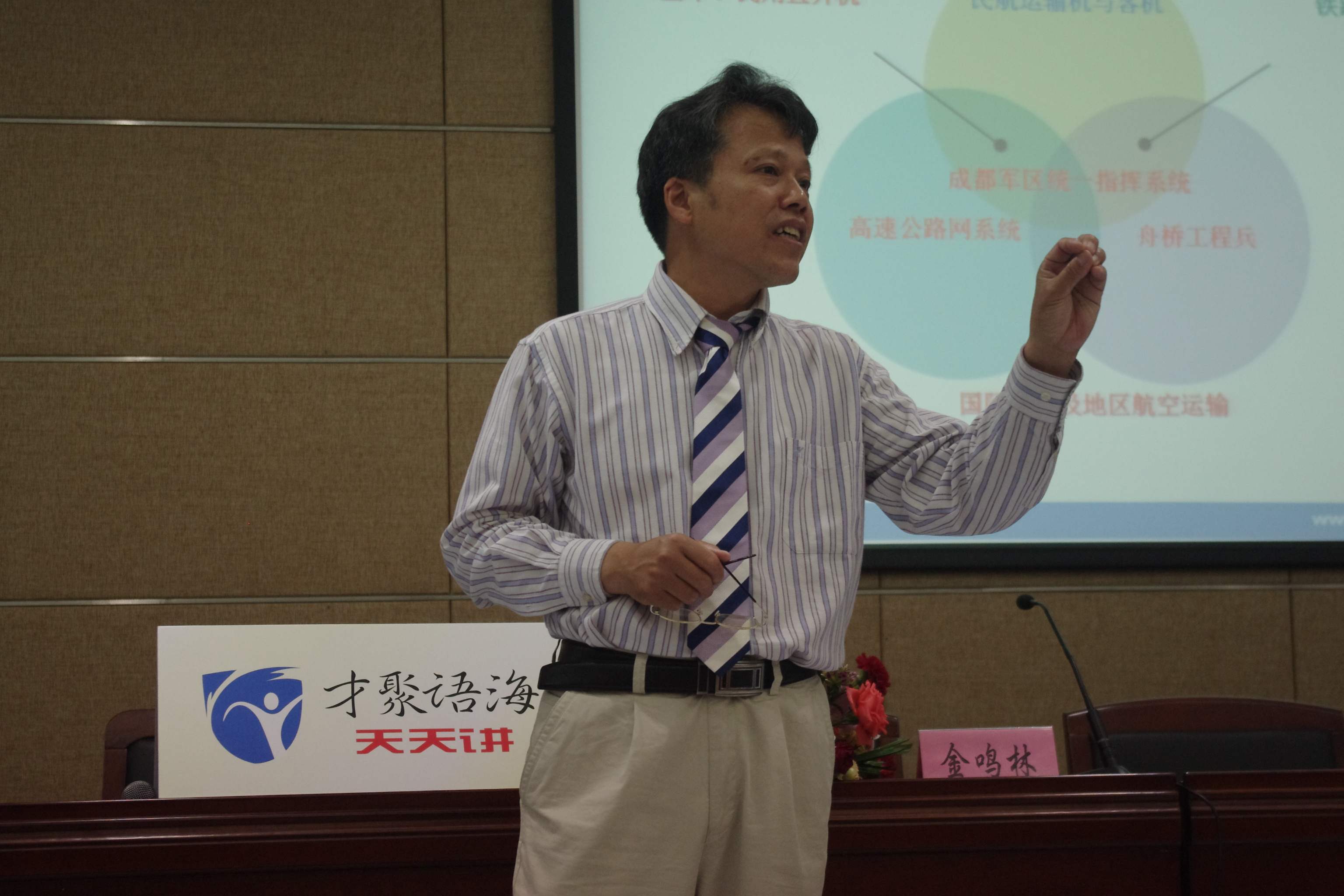 2012年5月10日晚6点,我校科技处处长、更名办主任、我校天天讲讲师团的金鸣林教授在图书馆B101为我校师生带来了题为“5·12启示录”的讲座。