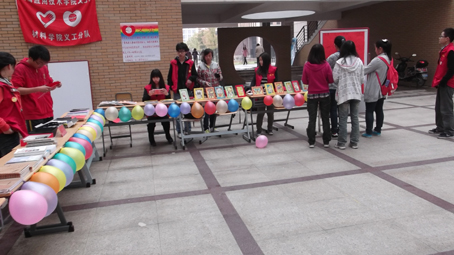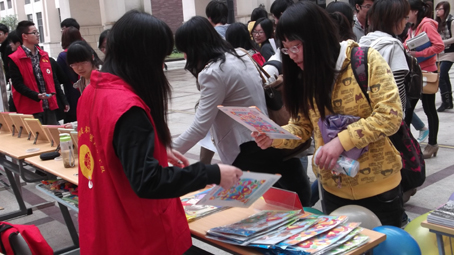 4月19日,材料学院义工队、“烛火”志愿者队在第二教学楼底楼大厅为上海广慈儿童福利院的脑瘫患儿宁小玉(化名)组织了一场慈善义卖活动,筹得捐款和义卖善款1020元,全部款项以及同学们给小玉的祝福留言册一并交付广慈福利院的孙院长。