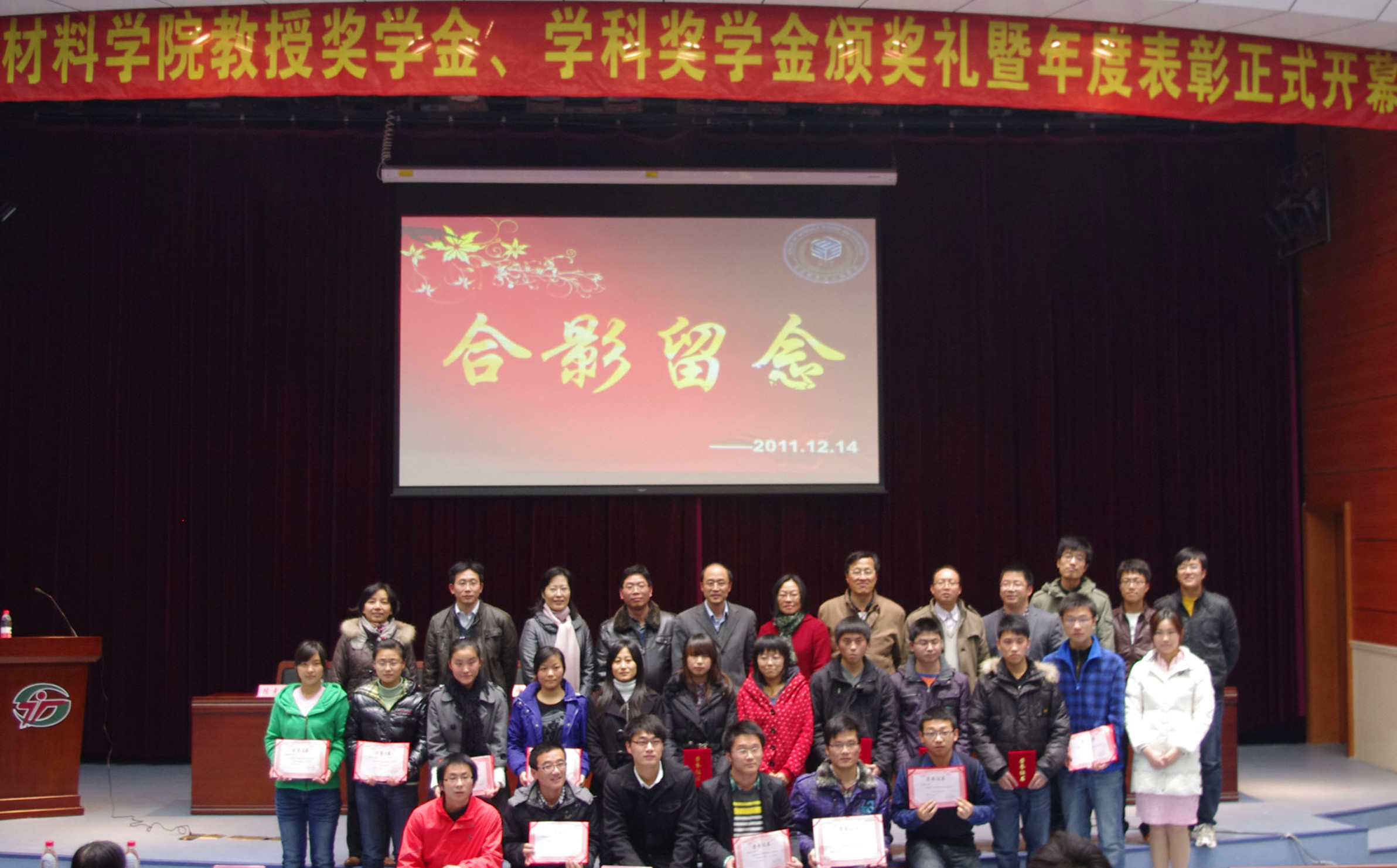 2011年12月14日晚,上海应用技术学院“第六届材料科学与工程学院教授奖学金、学科奖学金颁奖典礼暨年度表彰大会”在图书馆B106隆重举行。