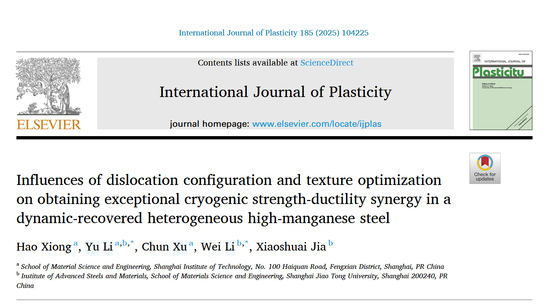 从“位错胞尺寸-密度”到“位错-相变-孪晶-织构”多级协同,两项研究形成了位错调控在深冷高强韧金属材料中的系统方法学,为极端环境关键部件的国产化提供了材料级解决方案,也彰显了我校在金属塑性微观机制与性能调控方向上的持续创新能力。
