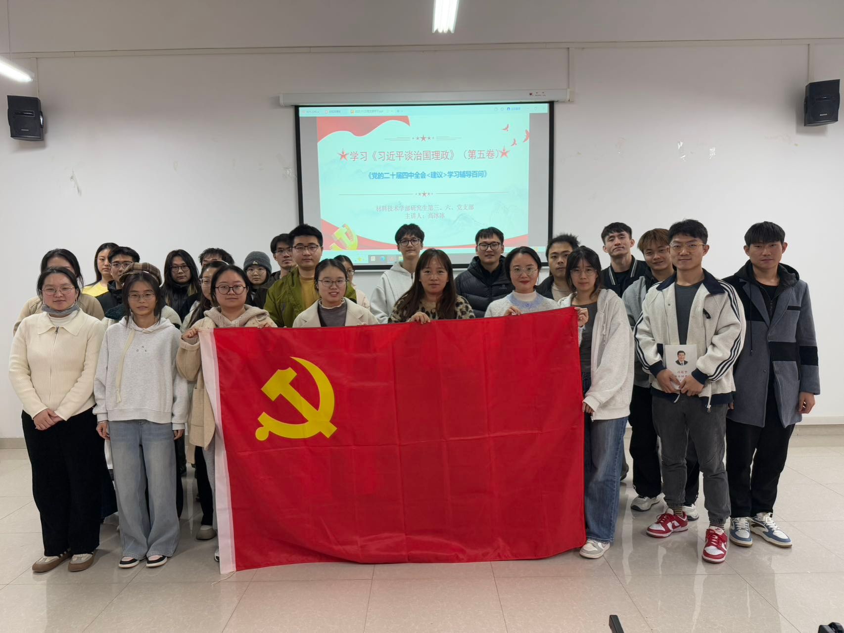 为深入学习贯彻习近平新时代中国特色社会主义思想,深刻领悟党的创新理论最新成果,2025年11月25日,材料技术学部研究生第二党支部、第三党支部、第六党支部组织全体党员开展《习近平谈治国理政》第五卷专题学习活动,通过理论研学、实践研讨、使命践行,推动党的创新理论入脑入心,引导支部党员将学习成果转化为科研报国、服务社会的实际行动。