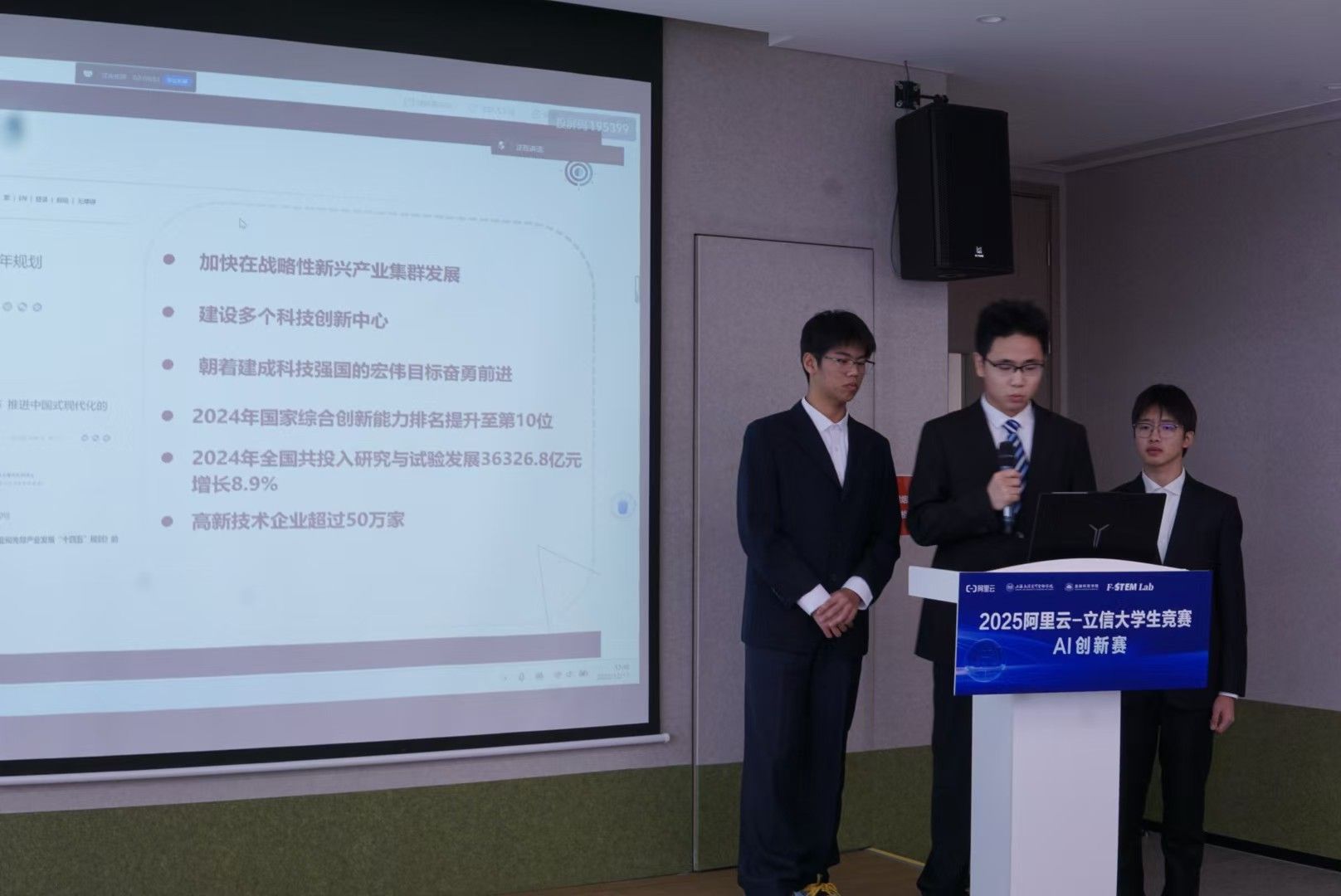 近日,2025阿里云-立信大学生竞赛-AI创新赛(上海赛区)决赛在阿里巴巴上海徐汇滨江园区成功举办。材料技术学部学子参加本次大赛并取得优异成绩,分别获得特等奖1项、二等奖2项。