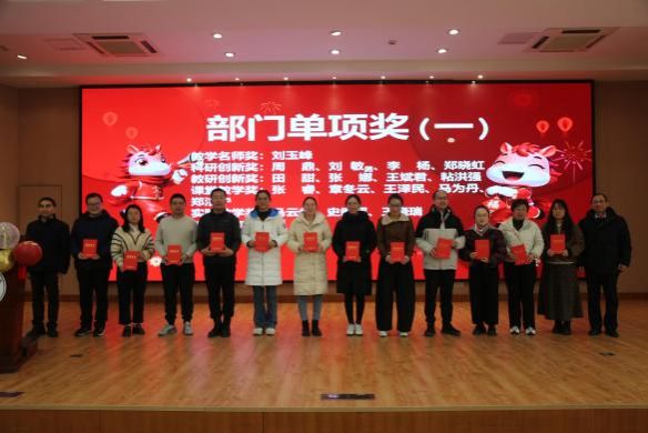 随后,大会颁发了材料技术学部2025年度单项奖,涵盖教学名师奖、科研创新奖、教研创新奖、课堂教学奖、实践教学奖、校企合作奖、安全管理奖、优秀导师奖、就业服务奖、精神文明奖和部门优秀奖等类别。一批在教学科研、学生培养和管理服务等方面表现突出的教师受到表彰,充分展现了材料技术学部教师队伍立足岗位、担当作为的良好精神风貌。