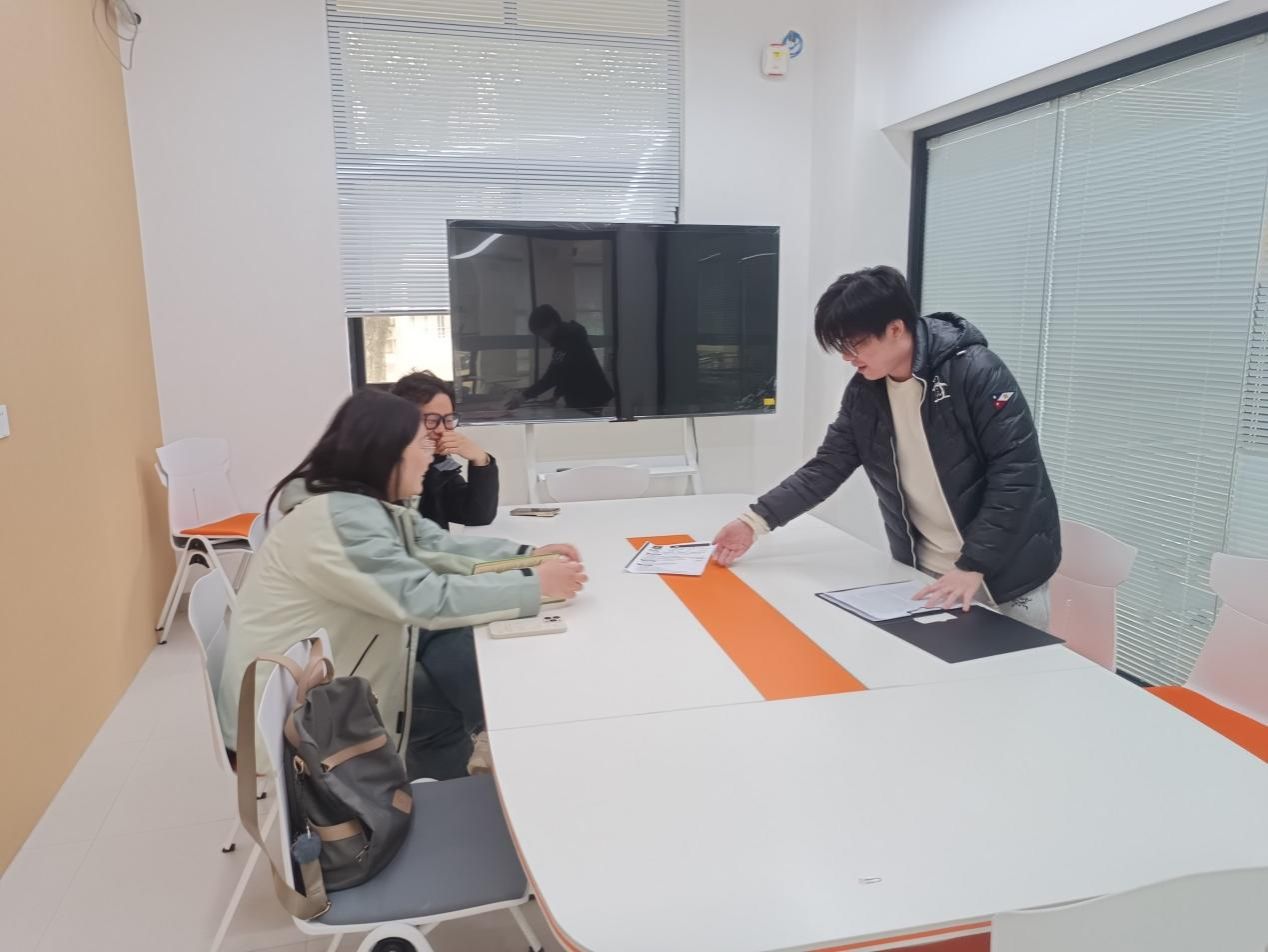 在模拟面试阶段,多位同学携带个人简历参与实战演练。赵越、章奇两位老师担任主考官。他们围绕中英文自我介绍、竞赛项目介绍等内容对学生进行针对性指导。