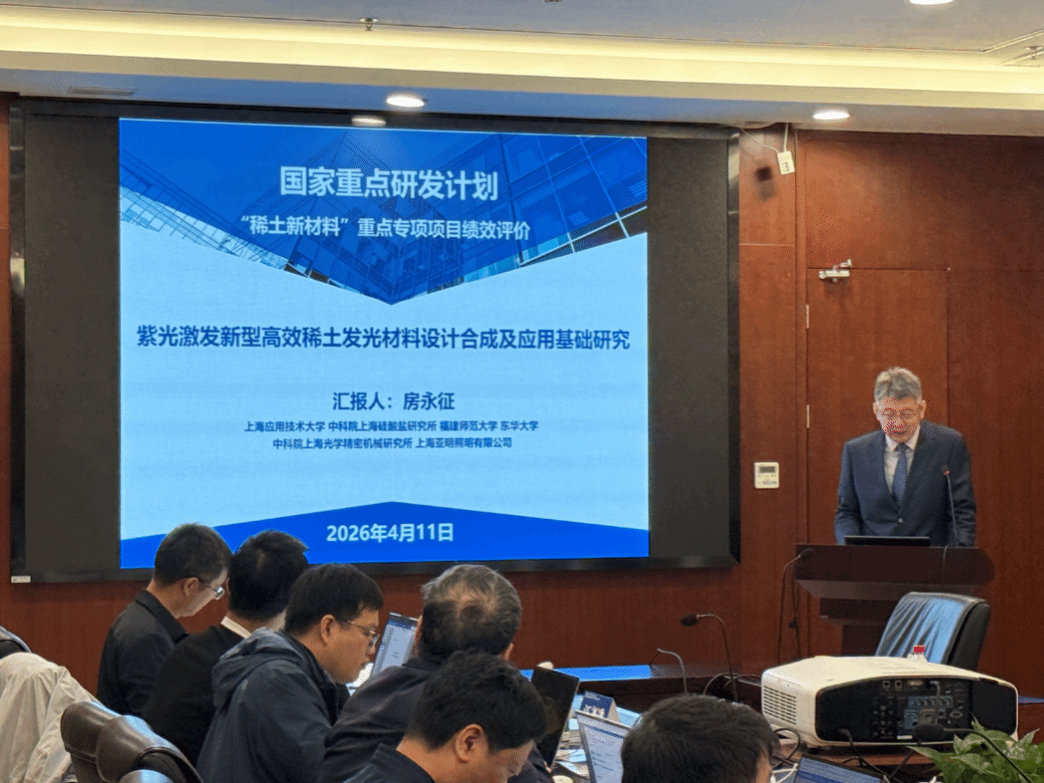 2026年4月10-11日,由上海应用技术大学牵头实施的国家重点研发计划项目“稀土新材料”重点专项“紫光激发新型高效稀土发光材料设计合成及应用基础研究”项目综合绩效评价会议在上海召开。会议由工业和信息化部产业发展促进中心组织,广东省科学院资源利用与稀土开发研究所倪海勇教授级高工担任专家组长。