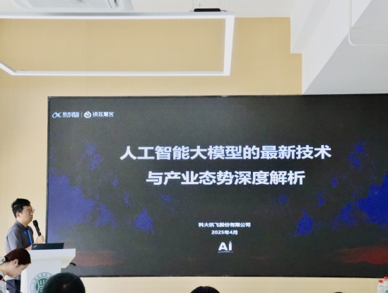 吕东围绕人工智能与高校教育场景的深度融合,以“人工智能大模型的最新技术与产业态势深度解析”为题进行分享。他介绍了ChatGPT、DeepSeek等国内外大模型的技术特点,并着重演示了讯飞星火在医疗、教育等场景的应用案例。他表示,“大模型已从‘炫技’走向‘赋能’,青年学生应关注AI逻辑、数据安全等议题,成为应用技术的理性推动者。”