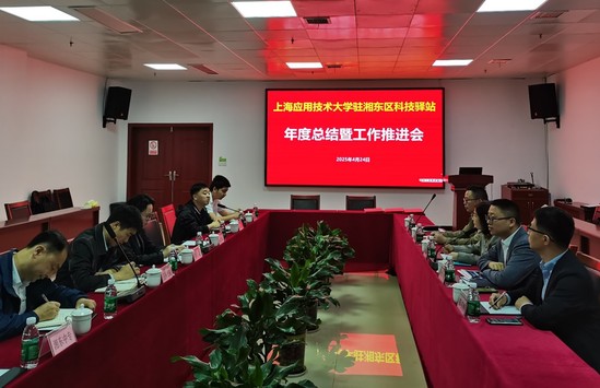 刘敏副教授在工作总结中,首先回顾了上海应用技术大学驻湘东区科技驿站的筹建历程,然后重点从政策咨询、科技服务、人才引育和资源链接等方面汇报了科技驿站一年来取得的工作成效,并提出了工作思路和展望。刘敏副教授受学校科研院委托负责科技驿站具体工作,并积极落实双方签订的校地合作协议,先后举办或组织“科技大讲堂”和专家企业对接活动,并促成了我校专家与当地重点企业的技术交流,现场举行了产学研合作培育项目等签约仪式。马向华充分肯定了科技驿站在湘东区委、区政府关心支持下取得的重要进展和丰硕成果。她指出,学校坚持“应用导向、技术创新”的特色定位,以学部制改革为牵引,深化有组织科研改革和人才培养改革,高度重视与地方政府协同推动区域科技创新发展;她希望科技驿站加强与职能部门对接,深化企业走访调研,促成更多的成果在湘东转化,为湘东产业升级注入更大的“上应智慧”和“上应力量”。