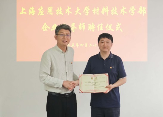 房永征为南华亭园区书记、主任刘源源颁发企业班导师聘书,并对材料技术学部的改革创新工作进行了介绍。他提出,材料技术学部在制定人才培养计划的过程中,不断凸显对于产业需求和企业需求的回应,推进专任教师100%对接企业(一师一企),聘任100位企业班导师,实现“科研协作+人才输送”双轮驱动等。